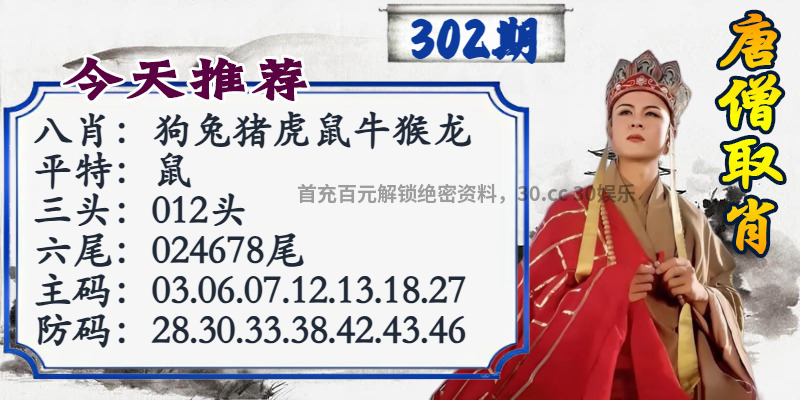 | 302期:【单双中特】╠双双双╣开:猴22准 |
